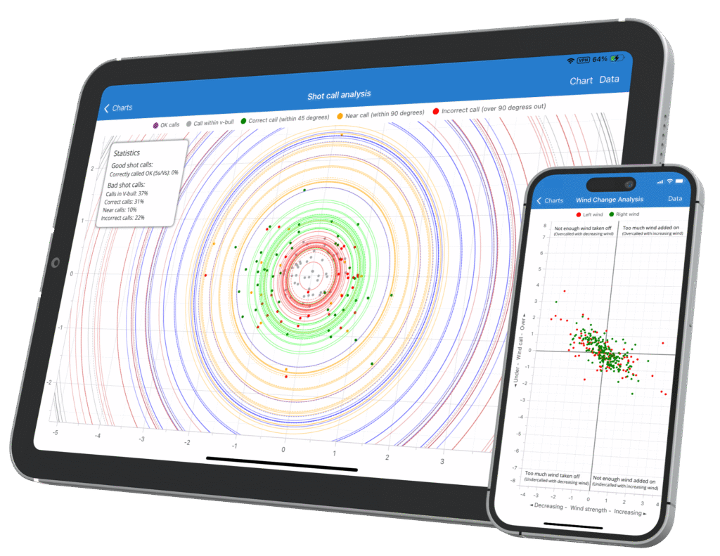 Advanced data filtering and analytics charts enable you to unlock insight across shoots, identifying how factors affect performance. Team management can compare shooter performance.